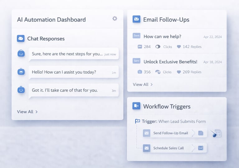 AI chat and automated follow-up keep visitors engaged and help convert leads without extra effort.